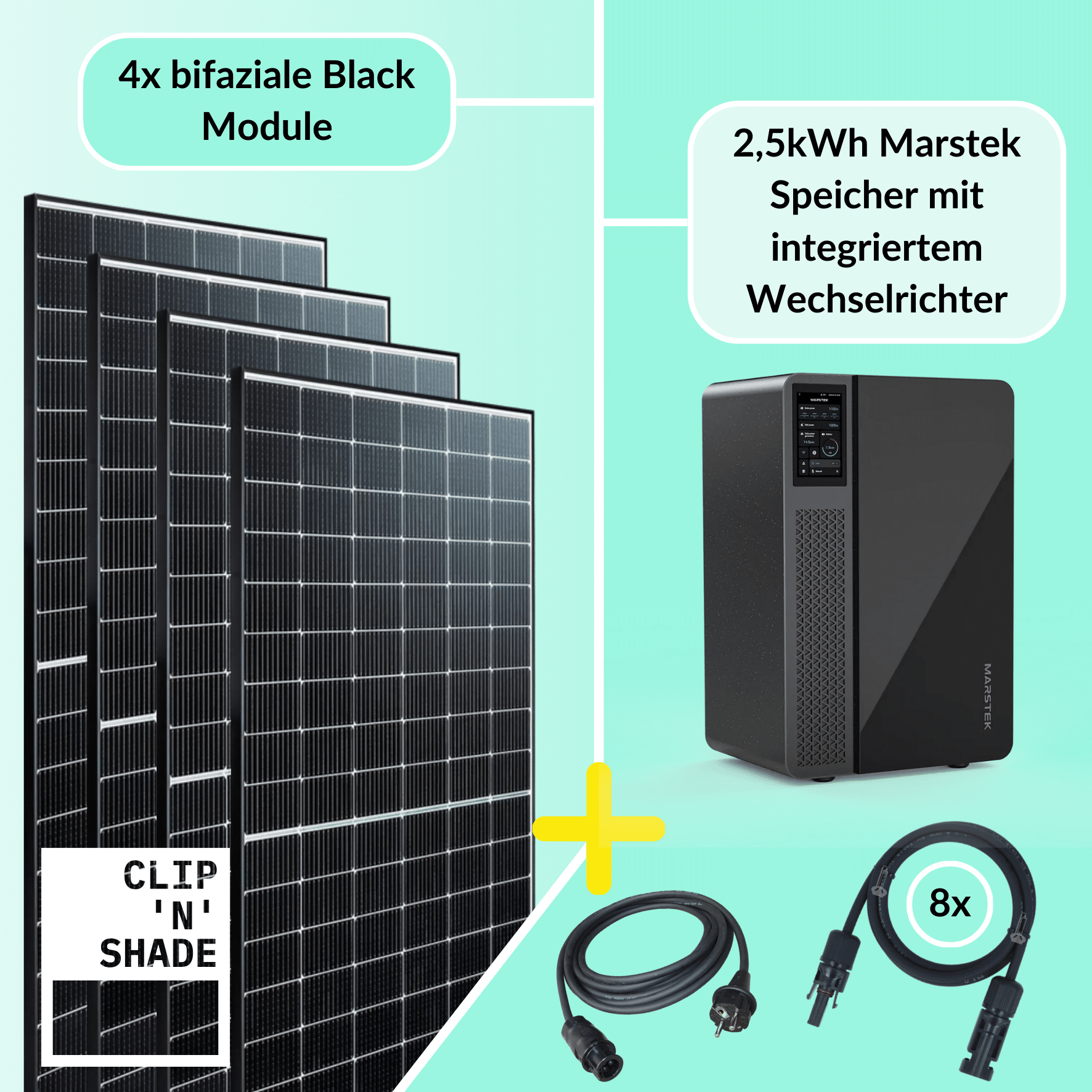 Centrale elettrica da balcone impostata su 1720 Wp incl. sistema di accumulo Marstek Jupiter-C da 2,56kWh In più