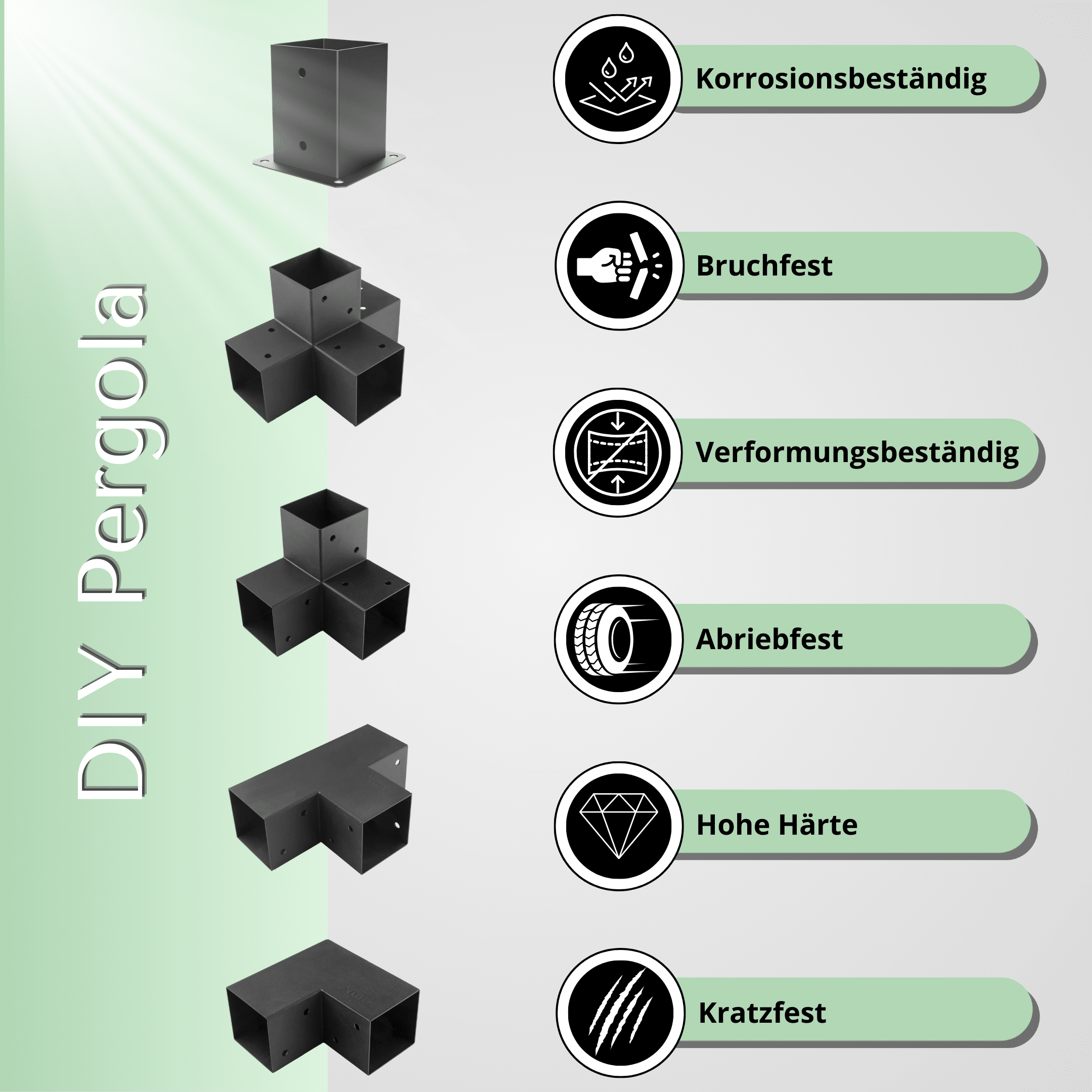 Che si tratti di recinzioni, coperture o mobili da giardino, questo raccordo angolare offre la massima flessibilità nella costruzione fai-da-te.