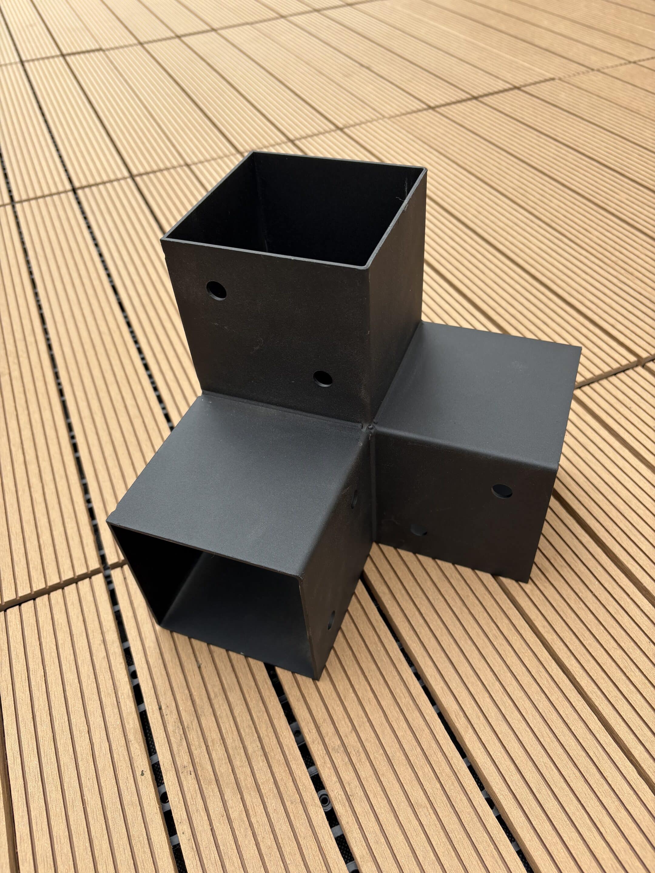 Con i nostri connettori angolari in acciaio di alta qualità, potete assemblare la vostra copertura per terrazze, pergole o carport in pochissimo tempo. I collegamenti, realizzati con precisione, garantiscono una costruzione stabile e un look moderno.