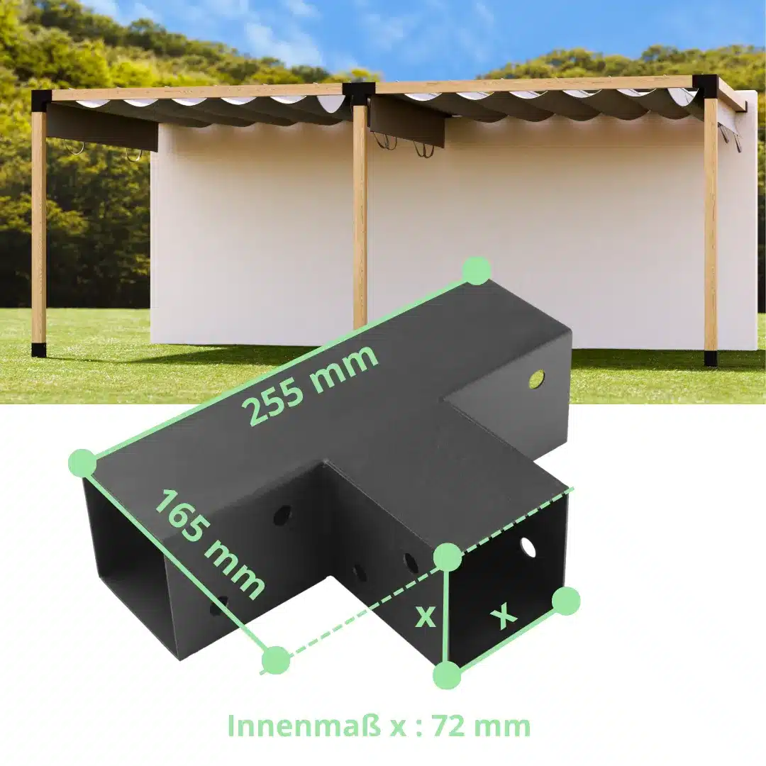 Con i nostri connettori angolari in acciaio di alta qualità, potete assemblare la vostra copertura per terrazze, pergole o carport in pochissimo tempo. I collegamenti, realizzati con precisione, garantiscono una costruzione stabile e un look moderno.