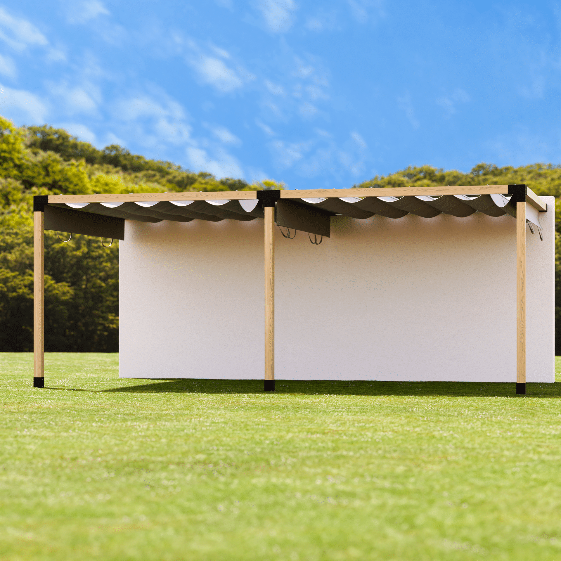 NotaLe travi in legno necessarie (100x100 mm) non sono incluse nella fornitura e devono essere acquistate separatamente. Le dimensioni possono quindi essere selezionate individualmente.