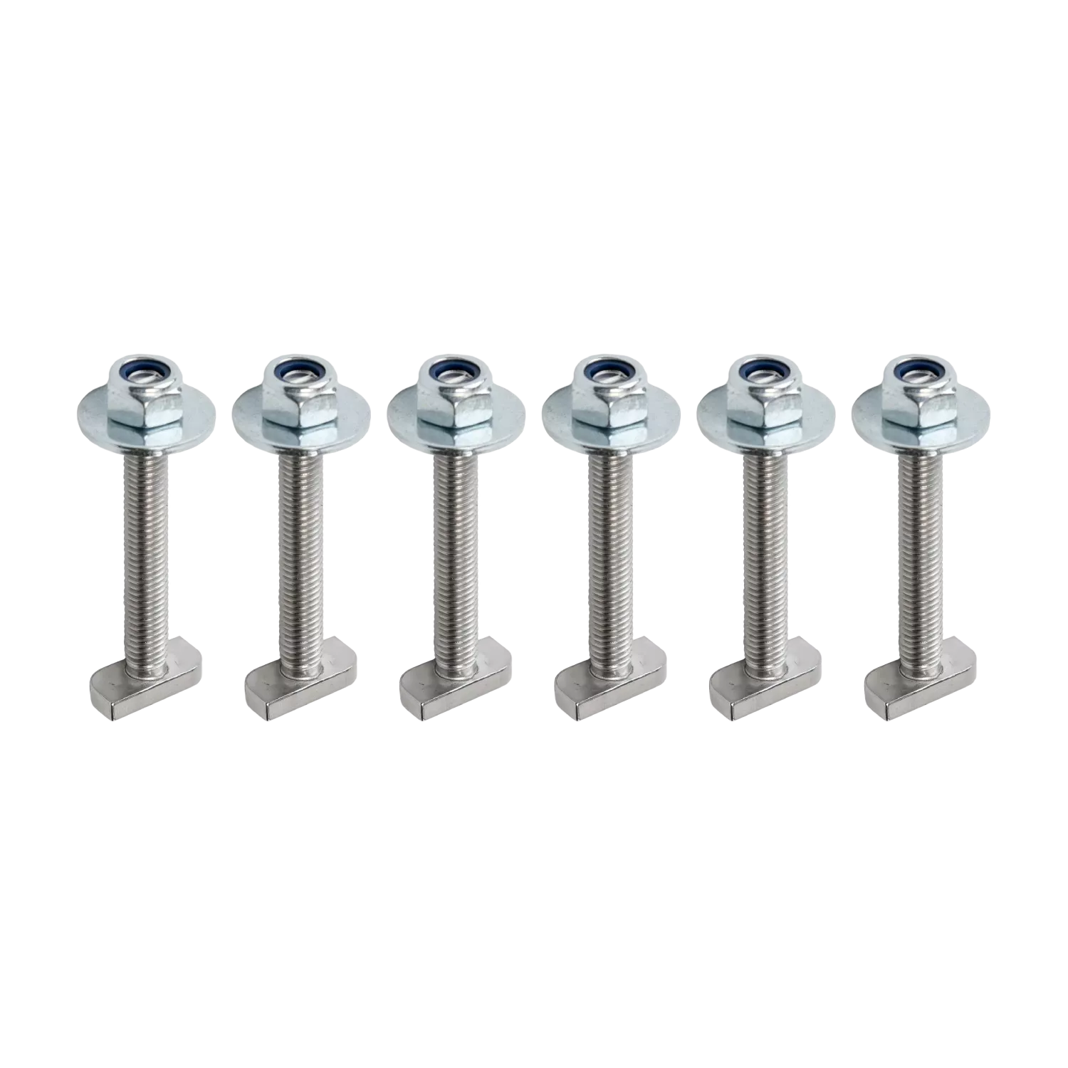 - 6 x viti con testa a martello (M8 x 60 mm in acciaio inox V2A) per il collegamento dei ganci da tetto alla guida in alluminio