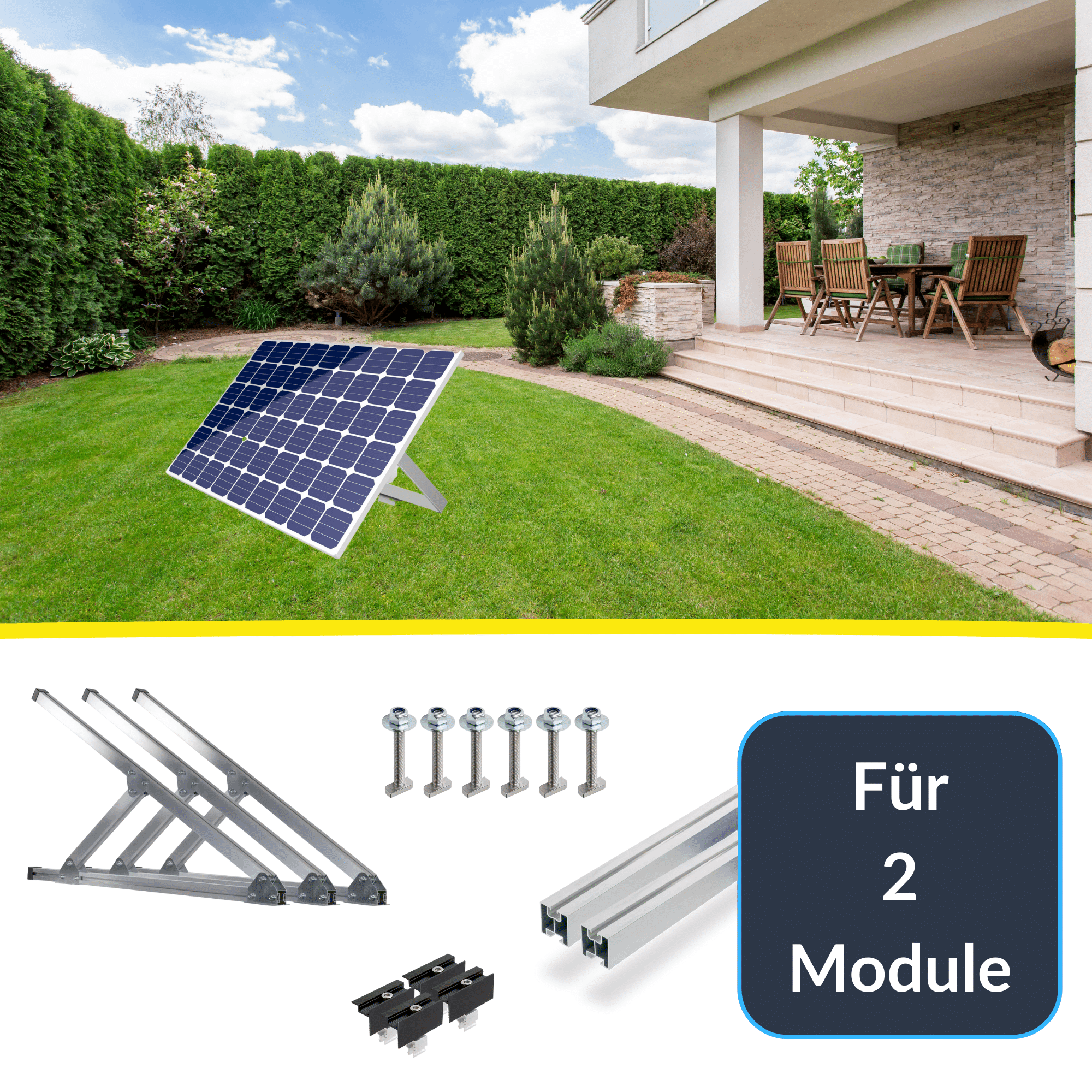 Questo set è ideale per 2 moduli con inverter su un tetto piano e in giardino!