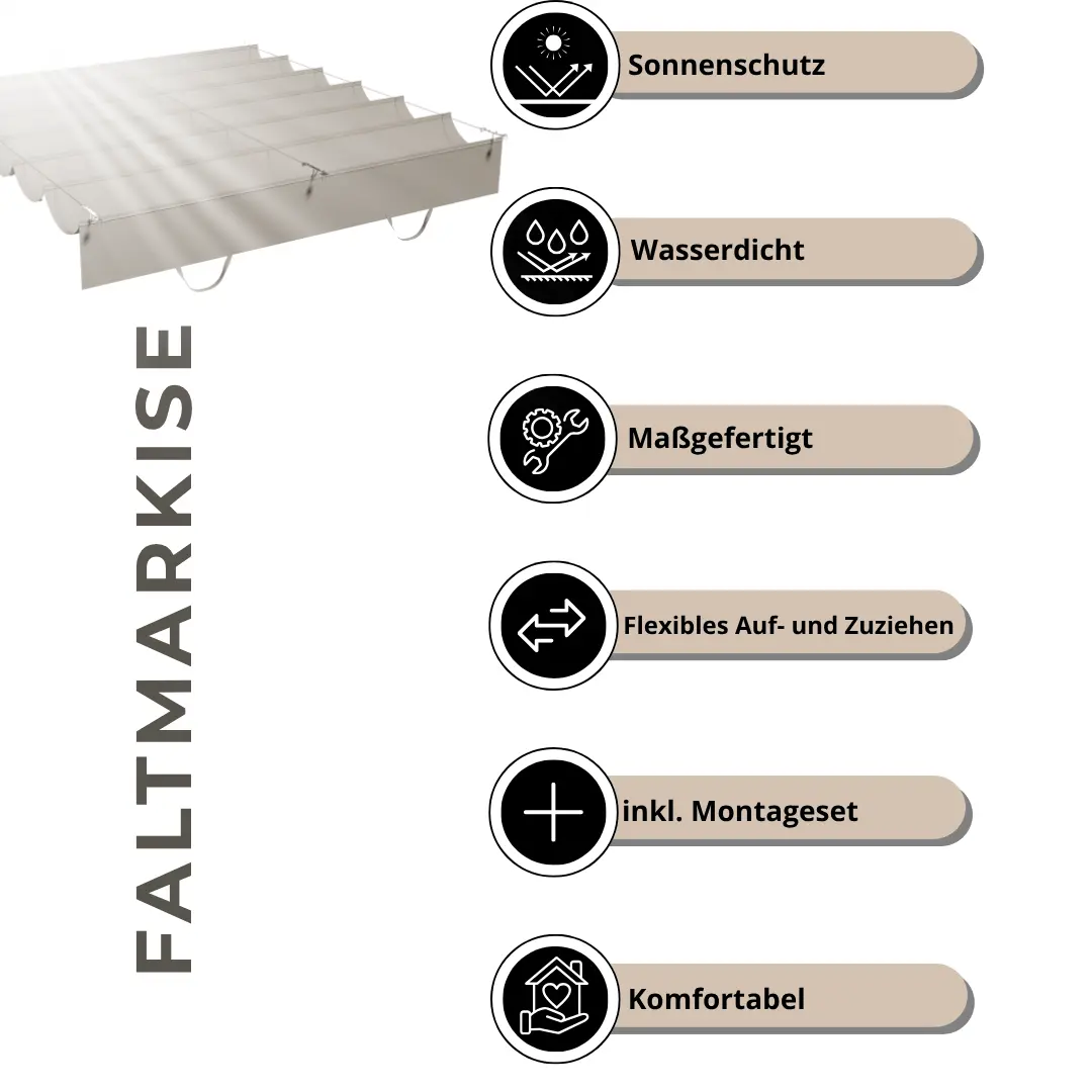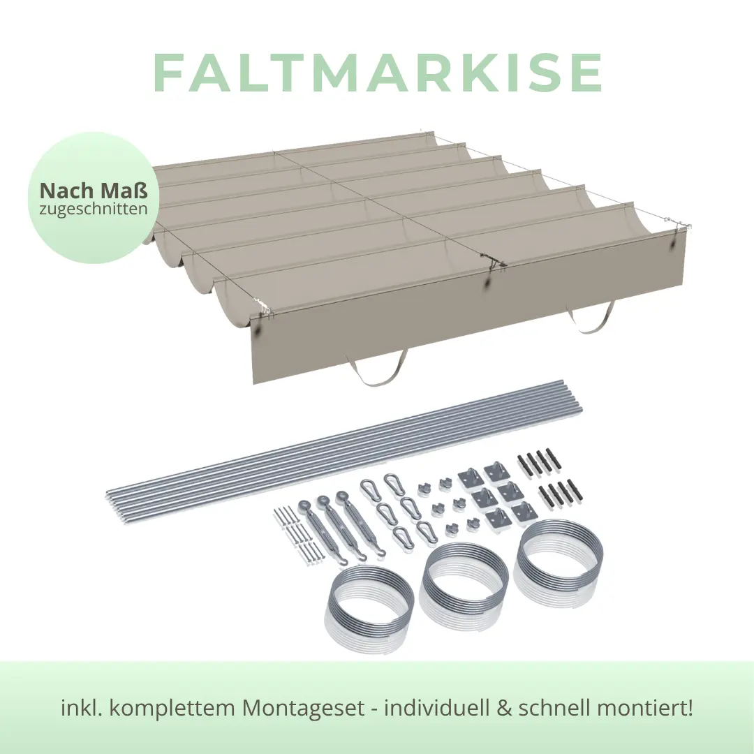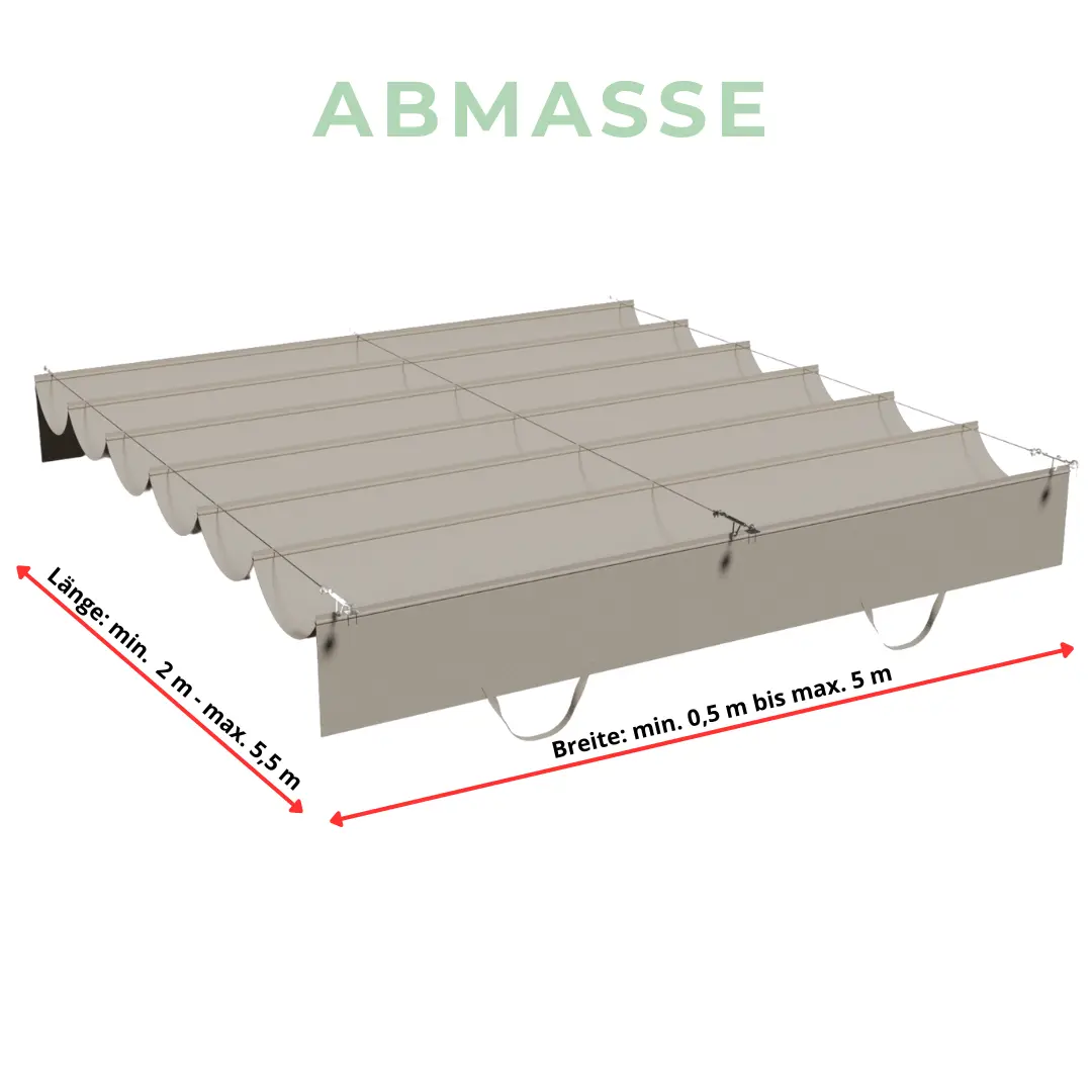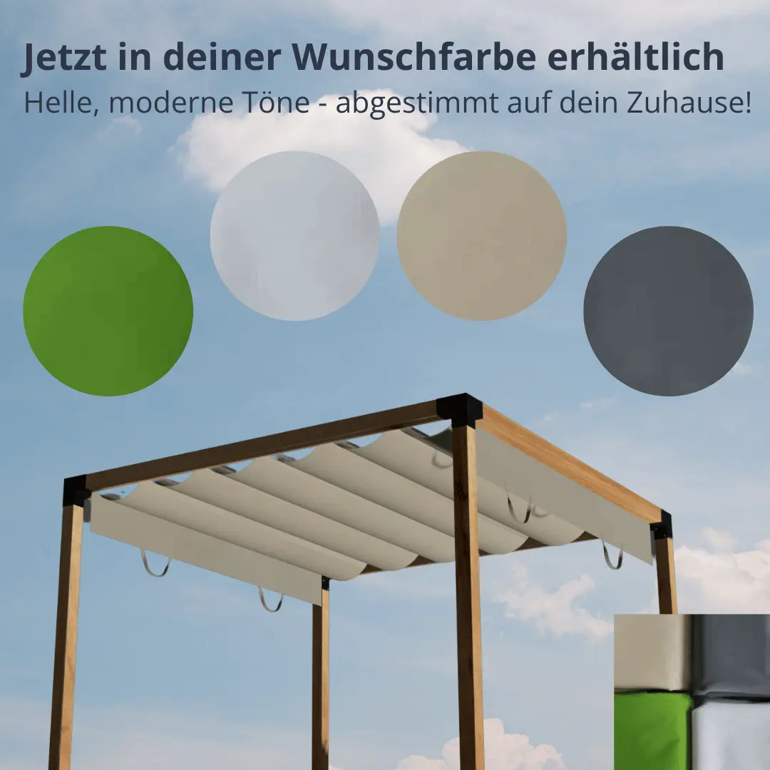 Il tessuto utilizzato è permeabile all'aria e all'acqua, resistente ai raggi UV e garantisce un clima piacevole sotto la tettoia, senza accumuli di calore. Serve anche come protezione dalla pioggia in caso di pioggia leggera.