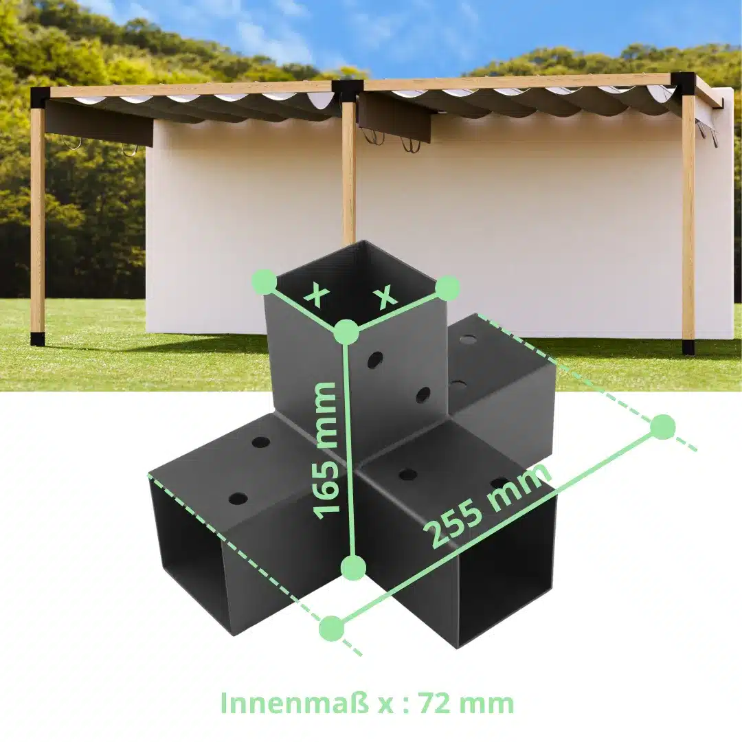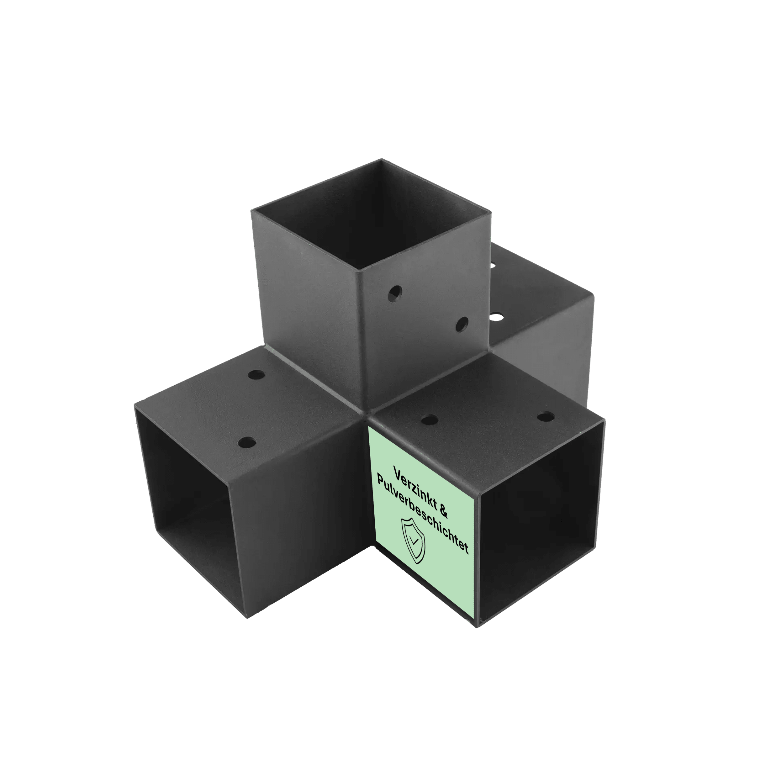 Con i nostri connettori angolari in acciaio di alta qualità, potete assemblare la vostra copertura per terrazze, pergole o carport in pochissimo tempo. I collegamenti, realizzati con precisione, garantiscono una costruzione stabile e un look moderno.