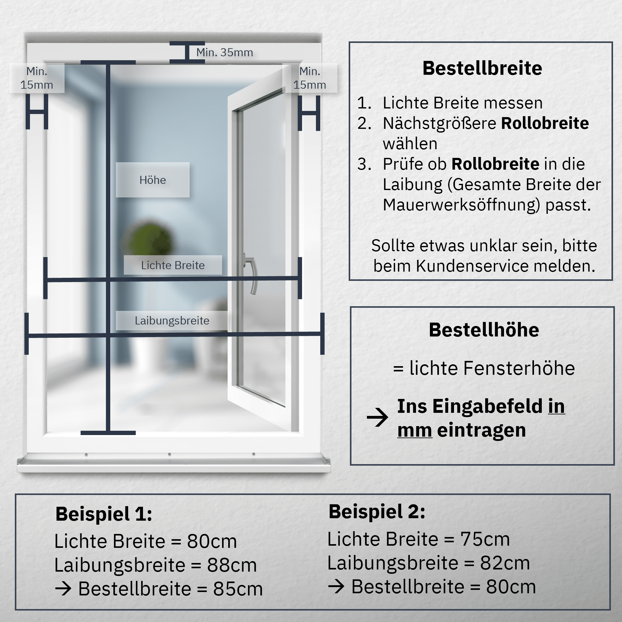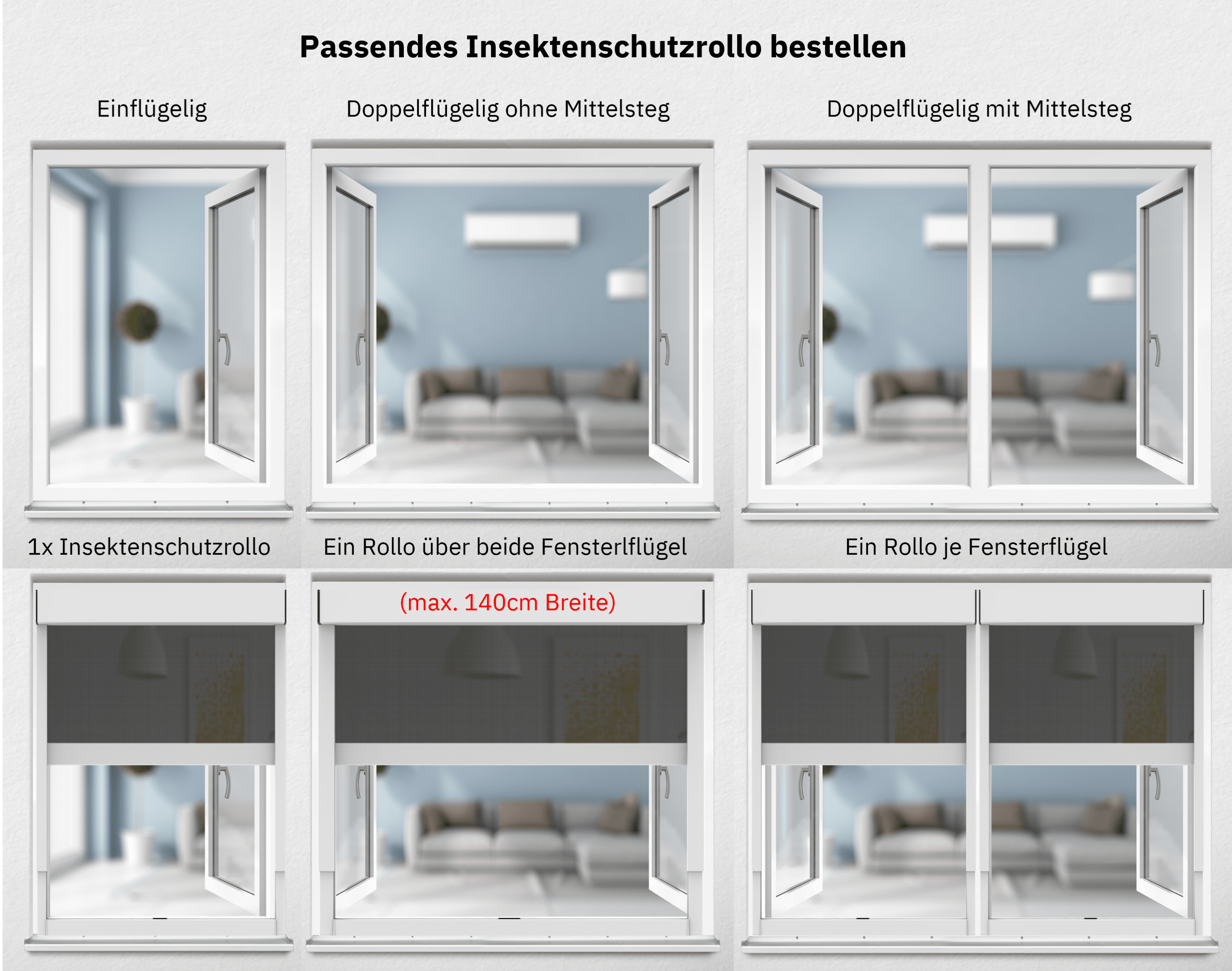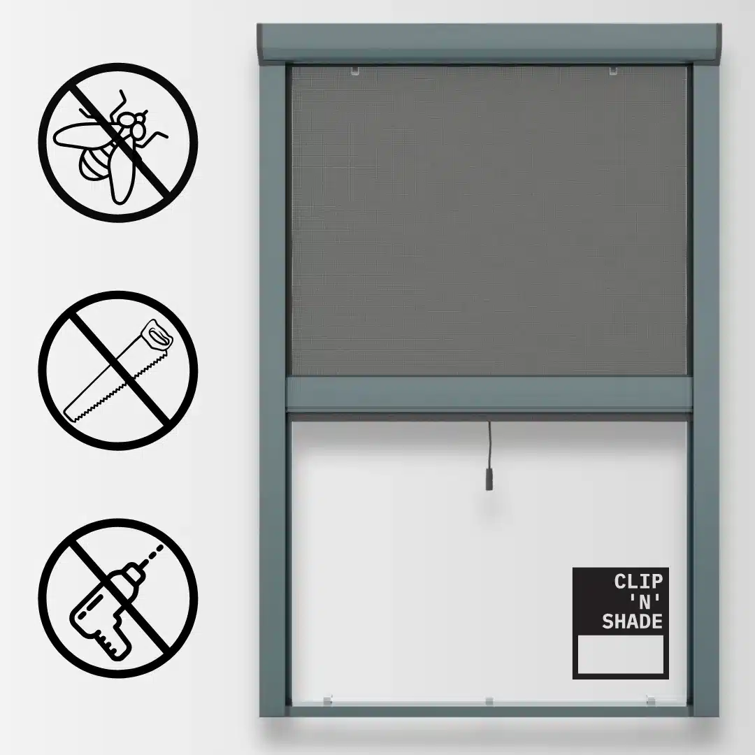 Tenda a rullo con zanzariera Premium: montaggio senza forare, senza segare, montaggio preciso, senza attrezzi, profili in alluminio di alta qualità.